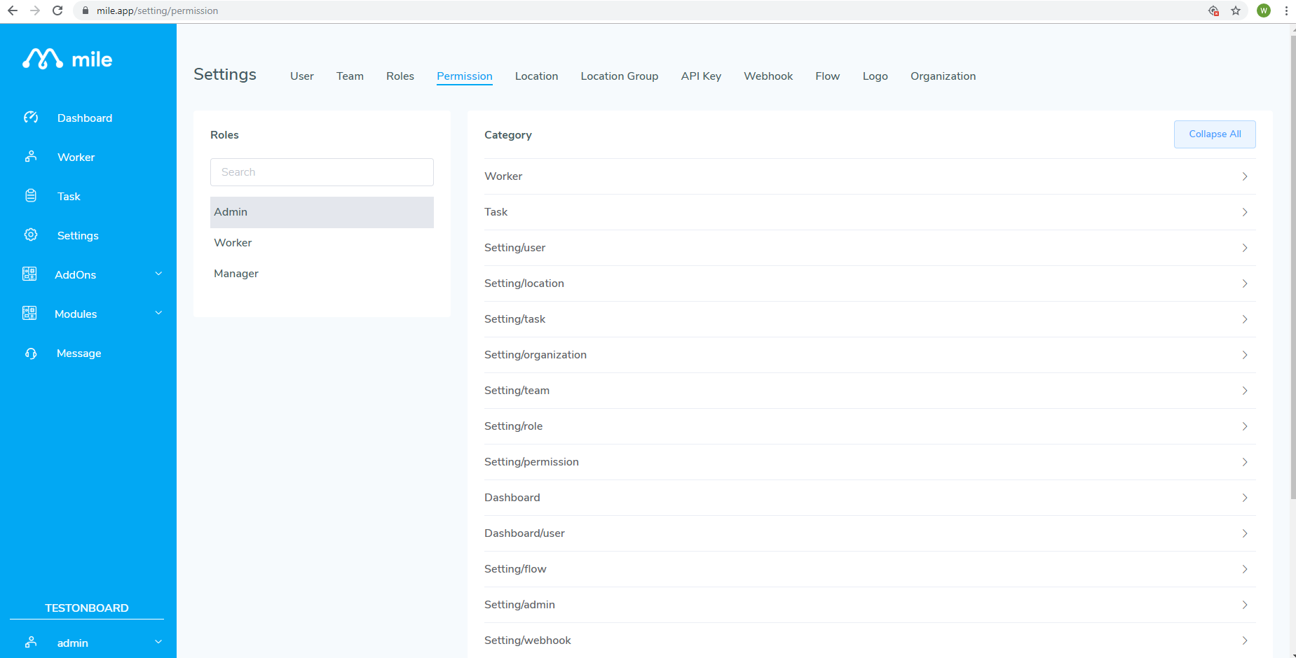 Akses menu pada setiap peran (Role) dapat diatur dari sub menu Permission seperti gambar di bawah ini: